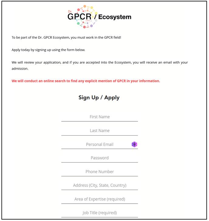 1. To register for the workshop, you must first become a member of the Dr. GPCR Ecosystem.